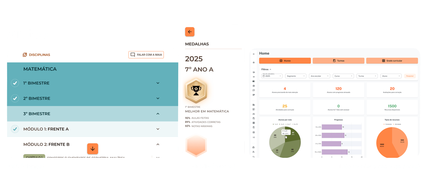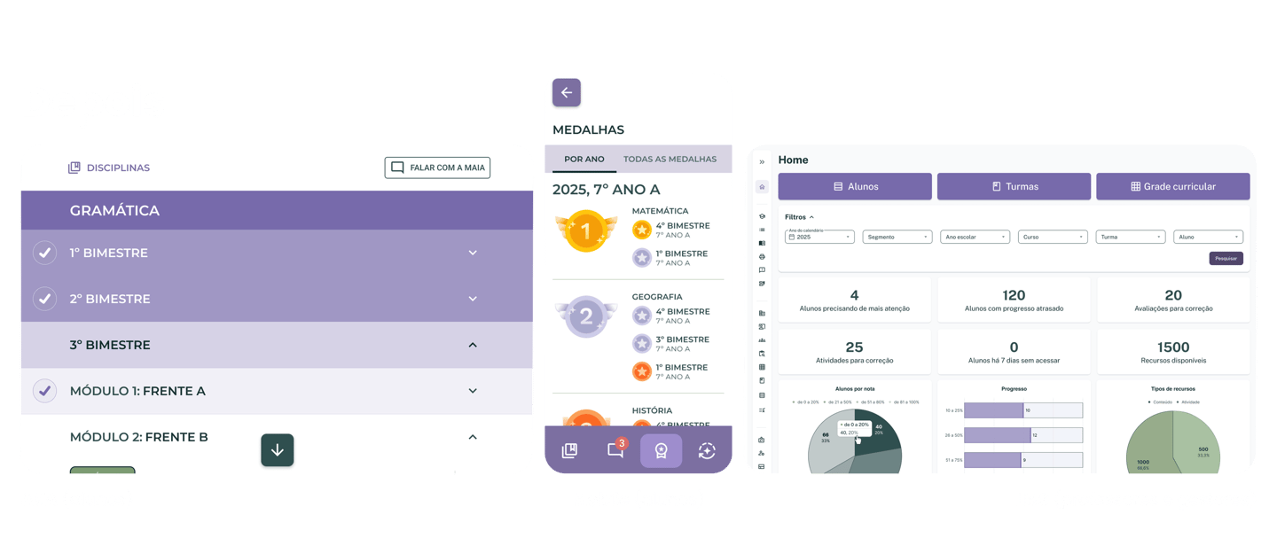 Ambiente educacional voltado a crianças com necessidades especiais, composta por um AVA (ambiente do aluno, em versões mobile e desktop) e um LMS (para professores e gestores).